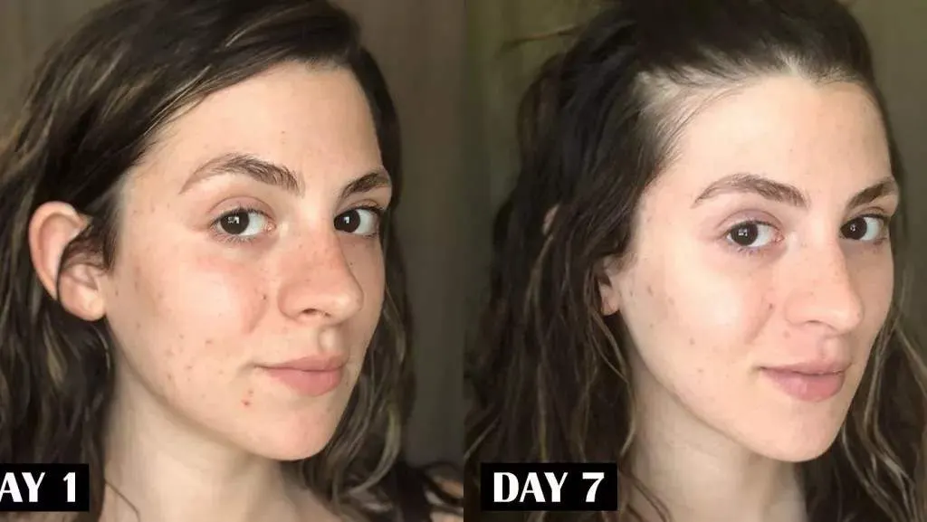 ในวันที่ 5-6 เธอทำได้เพียงพยายามช่วยตัวเองวันละครั้ง และเลื่อนดูเซลฟี่รูปใบหน้าตัวเองทั้งสัปดาห์ที่ผ่านมา เธอรู้สึกพึงพอใจมากอย่างน่าตกใจ เมื่อเทียบกับวันแรก ..ผิวในวันที่ 7 ของเธออักเสบน้อยลงอย่างเห็นได้ชัด มีสิวน้อยลง มีเลือดฝาด และดูสดใสเปล่งปลั่งอย่างเห็นได้ชัด เธอบอกด้วยว่า เป็นเรื่องยากมากนะ ที่จะสังเกตการเปลี่ยนแปลงใบหน้าตัวเองในแต่ละวัน แต่ภาพเซลฟี่ตั้งแต่วันแรก-วันสุดท้ายมันไม่ได้โกหกเธอเลย ผิวของเธอดูดีขึ้นจริงๆ