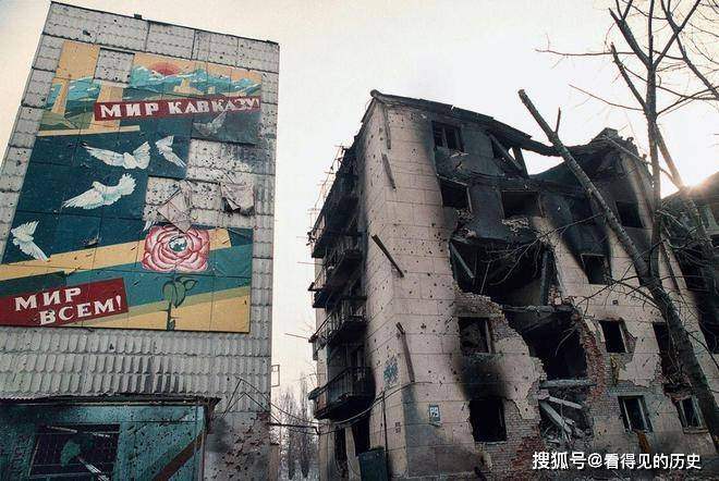 5. "สันติภาพในคอเคซัส! สันติภาพสำหรับทุกคน!" สโลแกนบนอาคารใน Grozny เมื่อวันที่ 25 มกราคม 1995