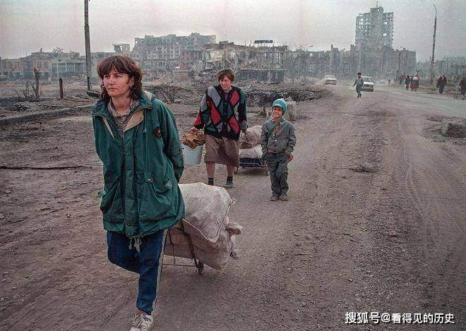 10. เมื่อวันที่ 31 มีนาคม พ.ศ. 2538 ชาวเชเชนเดินข้ามสะพานข้ามซุนซาใจกลางเมืองกรอซนีย์
