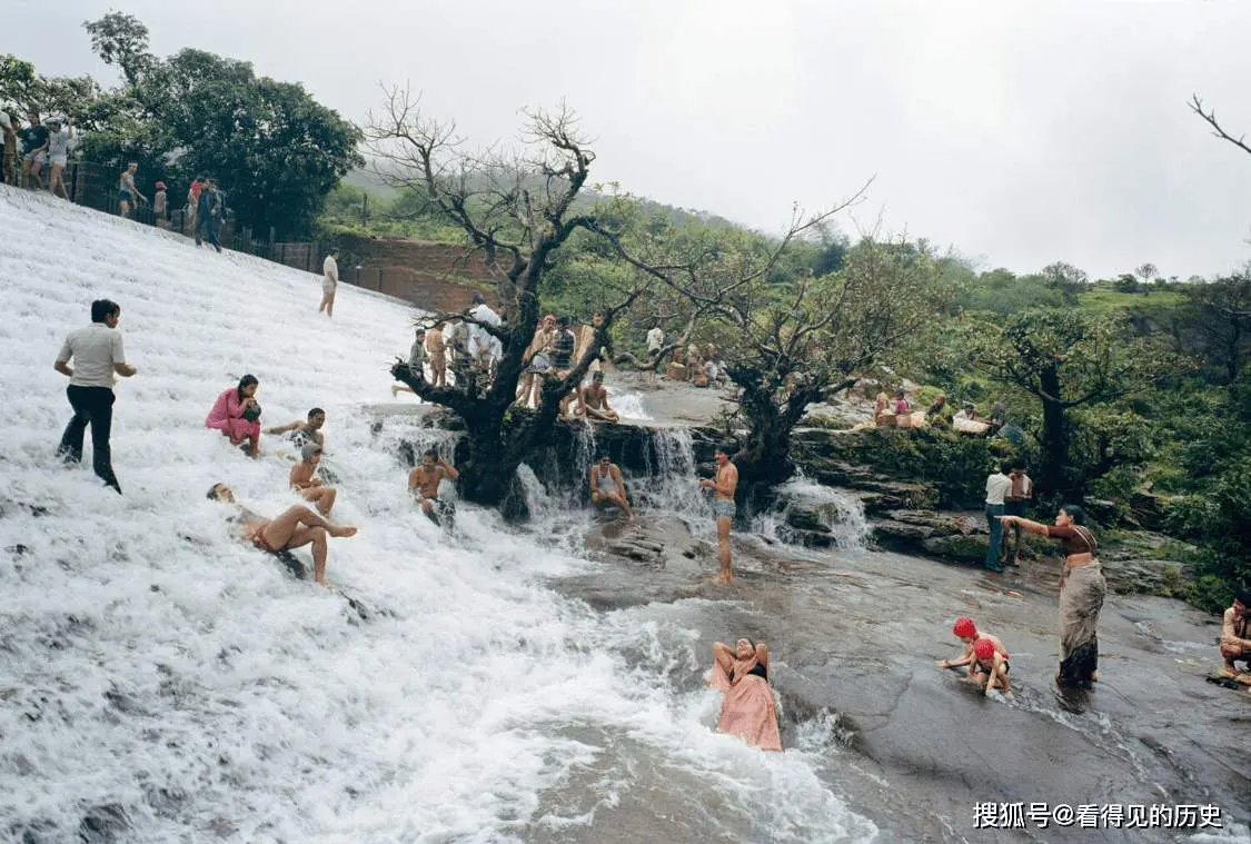 8. ชาวอินเดียเล่นน้ำที่เขื่อน Bushey ในเมือง Lonavala รัฐมหาราษฏระ ปี 1985