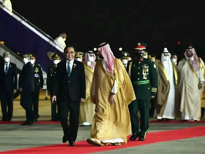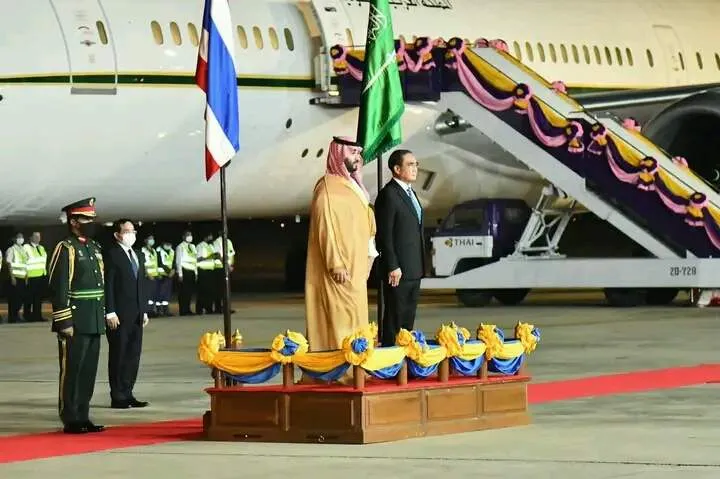 นายกรัฐมนตรี รับเสด็จเจ้าชายมูฮัมมัด บิน ซัลมาน บิน อับดุลอะซีซ อาล ซะอูด มกุฎราชกุมาร และนายกรัฐมนตรีแห่งราชอาณาจักรซาอุดีอาระเบีย ณ ท่าอากาศยานทหาร 2 กองบิน 6 (บน.6) ดอนเมือง กรุงเทพฯ 17 พฤศจิกายน 2565 (เมื่อคืน) มีคณะติดตามมาด้วย 800 คน
