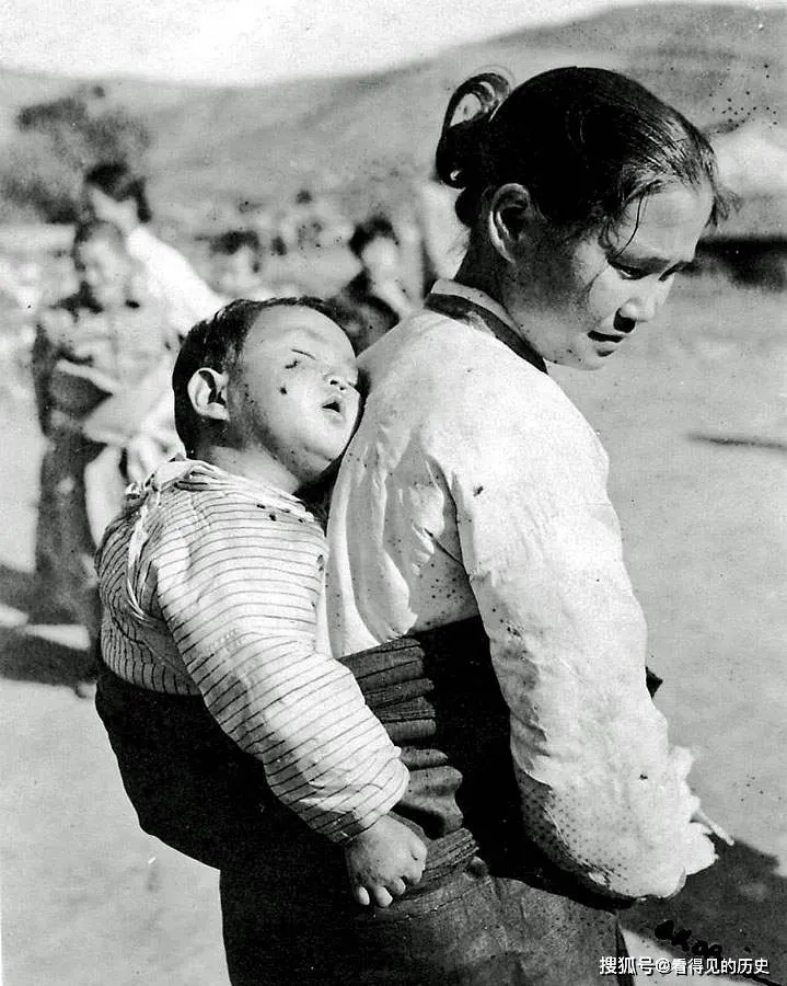 10. คุณป้าชาวเกาหลีที่มีเด็กอยู่บนหลังของเธอ