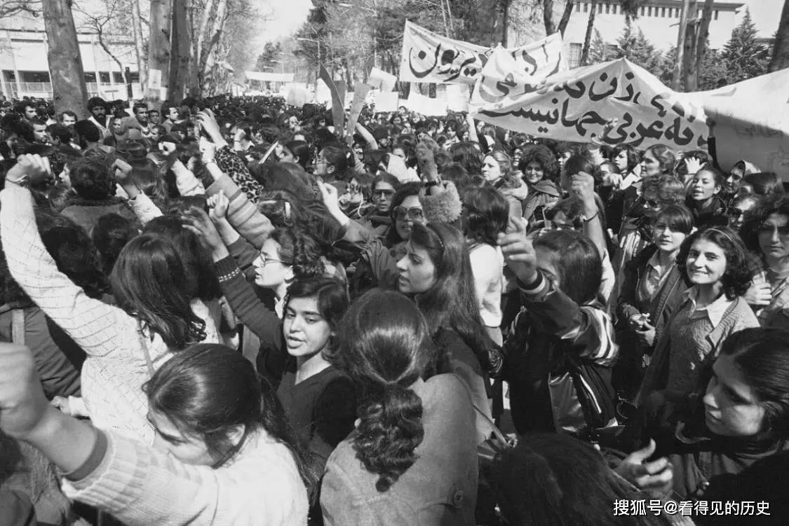 3. ในปี พ.ศ. 2522 เมื่อต้องเผชิญกับพฤติกรรมป่าเถื่อนของระบอบ สตรีชาวอิหร่านพากันออกไปตามท้องถนนโดยไม่ปิดหน้า และชูกำปั้นขึ้นเพื่อประท้วงพฤติกรรมของเจ้าหน้าที่ ภาพถ่ายโดยริชาร์ด ทอมคินส์