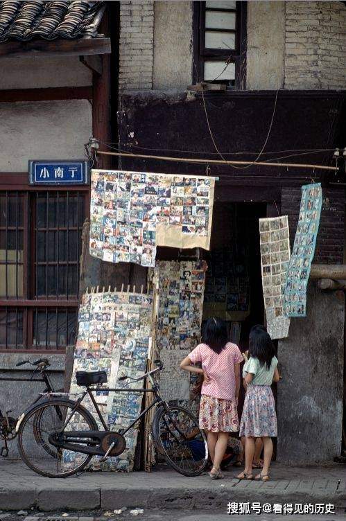 2. ในปี 1981 เด็กหญิงตัวเล็ก ๆ สองคนมองขึ้นไปที่ประตูห้องสมุดบนถนนเซียวหนาน เมืองเล่อซาน มณฑลเสฉวน ที่นี่มีการ์ตูนหลายเรื่อง