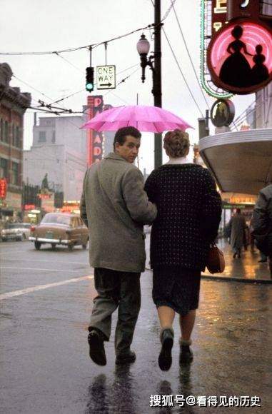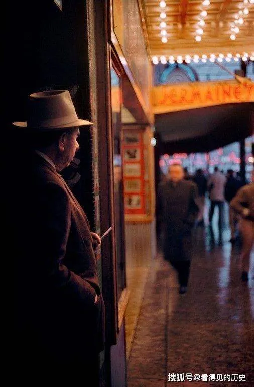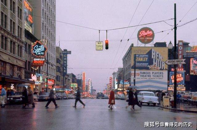 4. ในปี 1960 ทางเท้าของเมืองแวนคูเวอร์ในตอนเย็น เมื่อเปิดไฟครั้งแรก ไฟนีออนก็สว่างขึ้น
