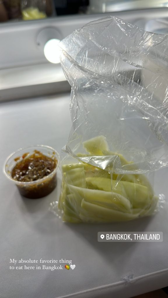 ต้องบอกเลยว่านาทีนี้ ช่วยหลีกทางให้มะม่วงน้ำปลาหวานเดินหน่อย 55555 เพราะคาดว่าน่าจะขายดีมาก หลังจากที่โรเซ่ หนึ่งในสมาชิกวงเกิร์ลกรุ๊ป “BLACKPINK” ได้โพสต์เมนูกินเล่นยามว่างอย่างมะม่วงน้ำปลาหวาน ผ่านอินสตาแกรมสตอรี่ส่วนตัวของเธอ เมื่อไม่กี่วันที่ผ่านมาพร้อมเเคปชั่นว่า “My absolute favorite thing to eat here in Bangkok” (ของโปรดที่ต้องกินในกรุงเทพ)