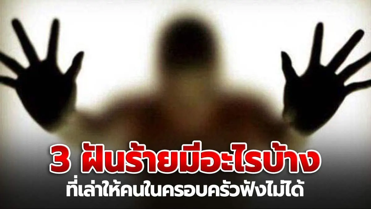 การฝันร้ายหลังจากหลับไปนั้นไม่ใช่ประสบการณ์ที่ดี เพราะแม้จะตื่นขึ้นแล้วรู้ว่าเป็นเพียงความฝัน ความกลัวในฝันร้ายก็จะยังคงอยู่กับเรา การนึกถึงรายละเอียดที่น่ากลัวของฝันร้าย มันเป็นสิ่งที่หลีกเลี่ยงไม่ได้ที่จะรู้สึก กลัว โดยเฉพาะอย่างยิ่งสำหรับคนที่เชื่อโชคลาง พวกเขากลัวว่าฝันร้ายเป็นการเตือนถึงความเป็นจริงที่เป็นลางร้าย หลังจากฝันร้าย เรามักอดไม่ได้ที่จะเล่าให้คนรอบข้างฟังว่าเกิดอะไรขึ้นในความฝัน บางคนบอกว่ามีฝันร้าย 3 ประเภทที่ไม่สามารถเล่าให้สมาชิกในครอบครัวฟังได้ 3 ประเภทคืออะไร?
