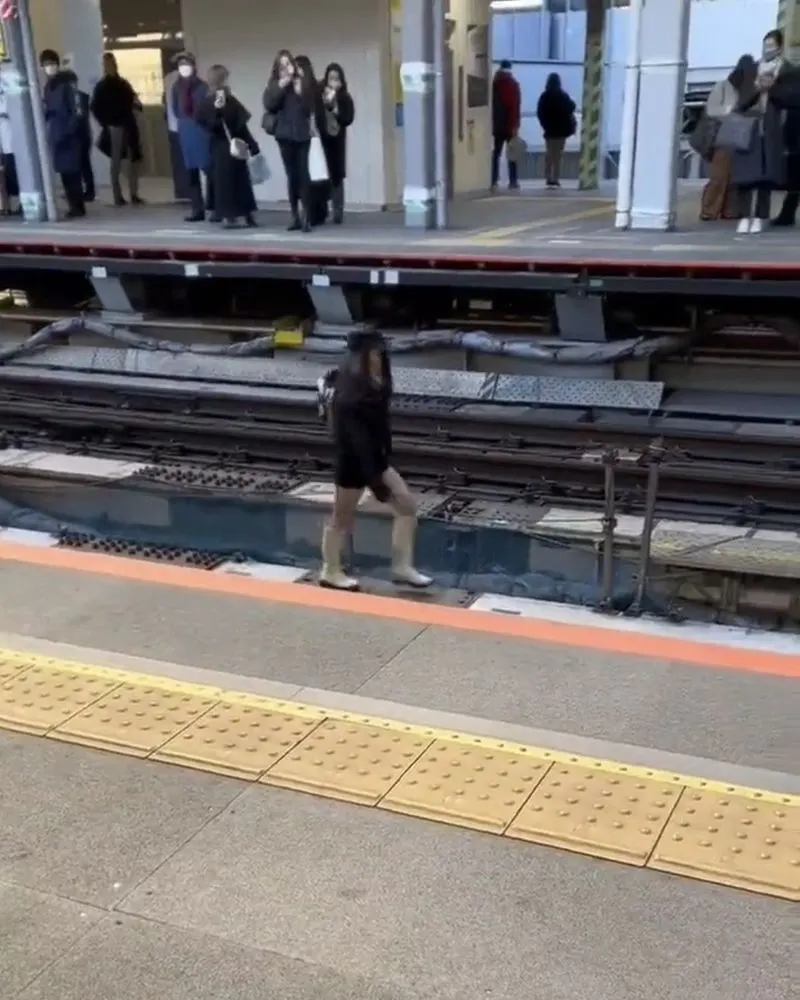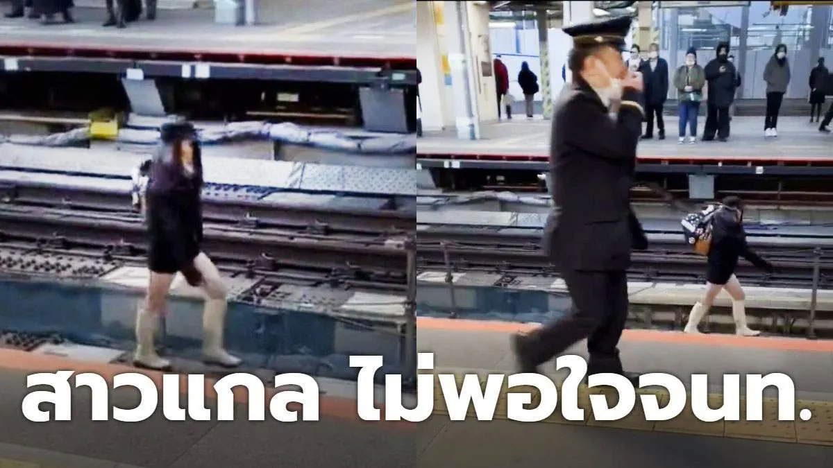 สาวญี่ปุ่นไม่พอใจเจ้าหน้าที่รถไฟ จึงตัดสินใจลงไปเดินบนรางรถไฟ ประชดซะเลย
