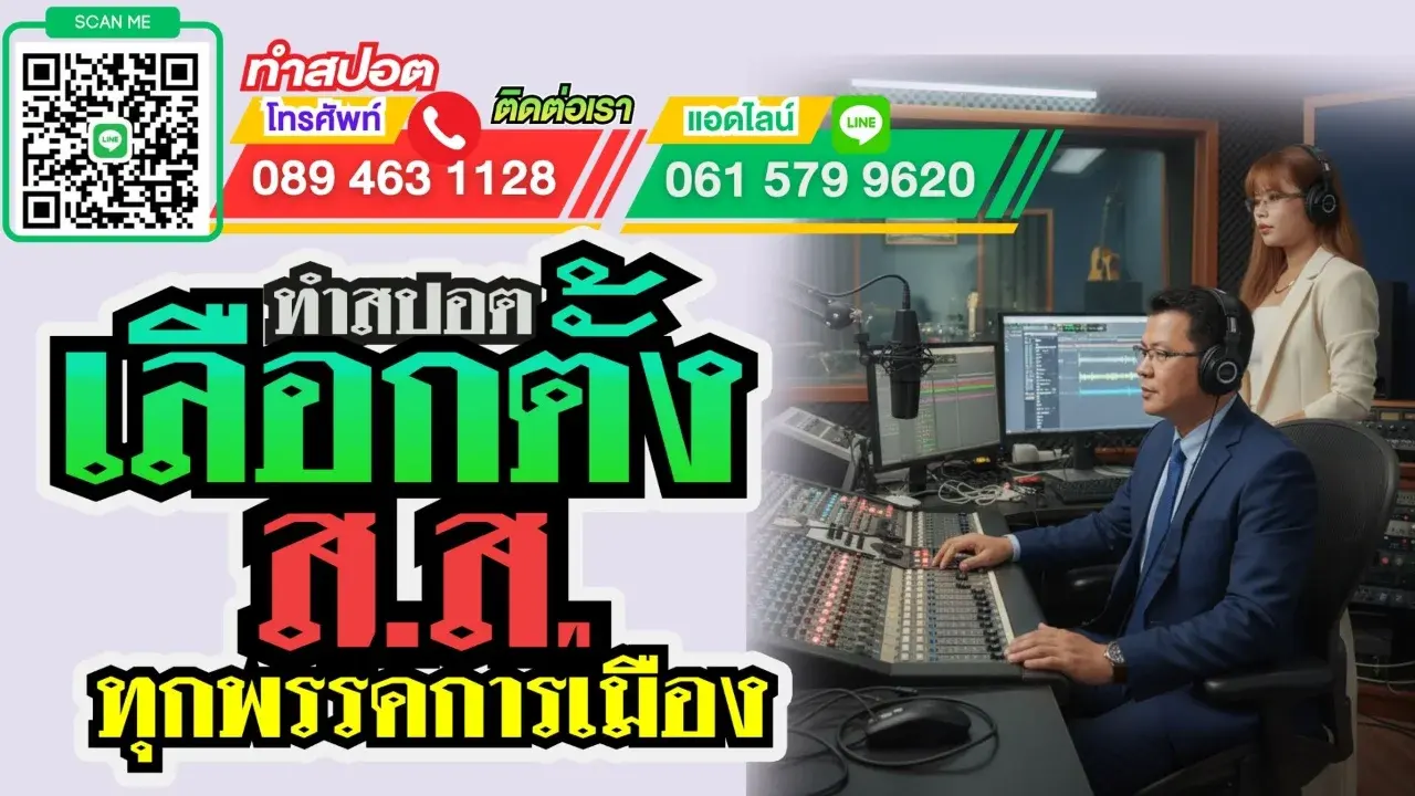 ทำสปอตเลือกตั้ง ส.ส. ทำสปอตหาเสียงเลือกตั้ง สร้างสปอตเลือกตั้งเพื่อดึงดูดผู้เลือกตั้ง รับทำสปอตหาเสียงเลือกตั้งทั่วไทย รับทำสปอตรถแห่ สปอตโฆษณา สปอตเลือกตั้ง งานด่วน ราคาเริ่มต้น 500 บาท