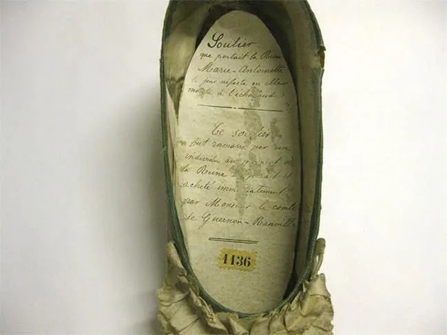 นี่ไม่ใช่รองเท้าของซินเดอเรล่า แต่มันคือรองเท้าที่มารี อังตัวเนตต์ทำหล่นหายตอนที่สะดุดบันไดในเช้าวันที่ 16 ตุลาคม 1793 จากนั้นเธอก็ถูกส่งเข้าประจำที่แล้วบั่นคอด้วยเครื่องกิโยติน