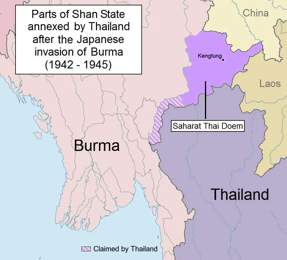 ข้อสังเกตุ แผนที่ประเทศไทยในช่วงเวลานั้นประกอบไปด้วยพื้นที่ของ เชียงตุงหรือสหรัฐไทยเดิม