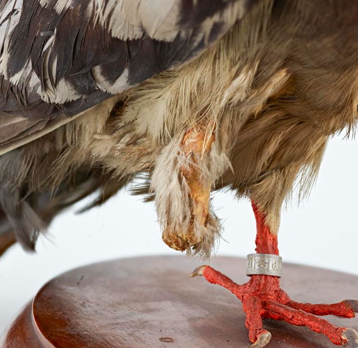 ภาพระยะใกล้ของร่างไร้คนขับของ Cher Ami เผยให้เห็นขาที่หายไป