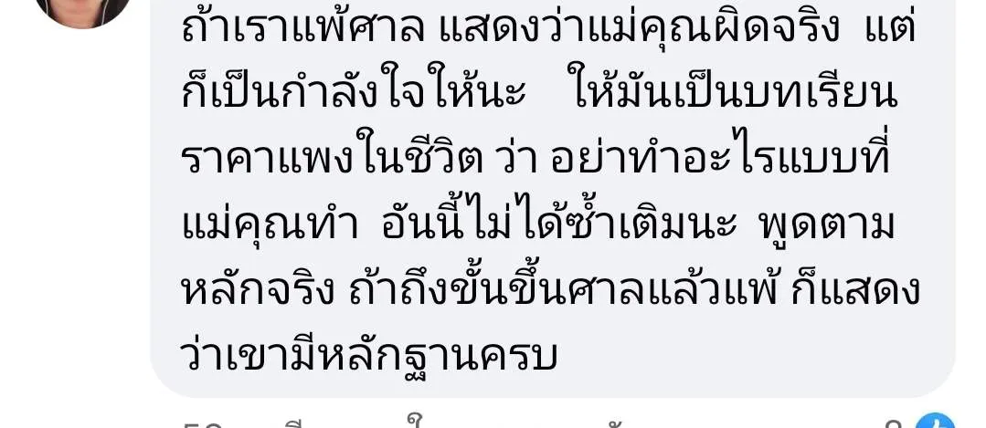 เราต่อสู้เรื่องคดีมาหลายปีจนเหนือยหมดเงินไปมากมายทั้งหมดที่เรามีก็คือที่กำลังฟ้องอยู่ถ้าสุดถ้าเราแพ้เราชีวิตเราคงยิ่งกว่าติดลบยิ่งคิดถึงวันนั้นเราก็อยากคิดสั้นเราอยากคิดบวกน่ะแต่เราคิดไม่ออกจิงๆ