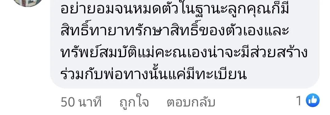 ตอนนี้เราไม่รู้ต้องทำยังไงดีเราคิดลบมากๆ พ่อกับแม่เราไม่ได้จดทะเบียนสมรสกัน ตอนนี้พ่อเราเสียแล้ว
