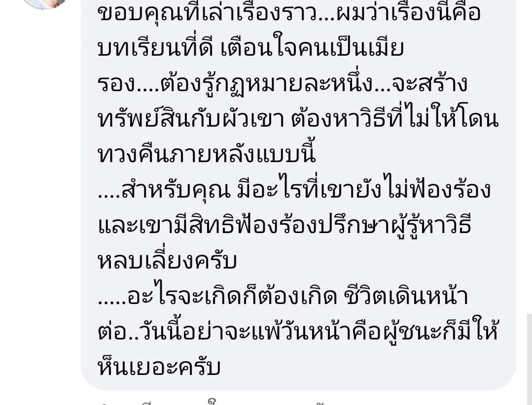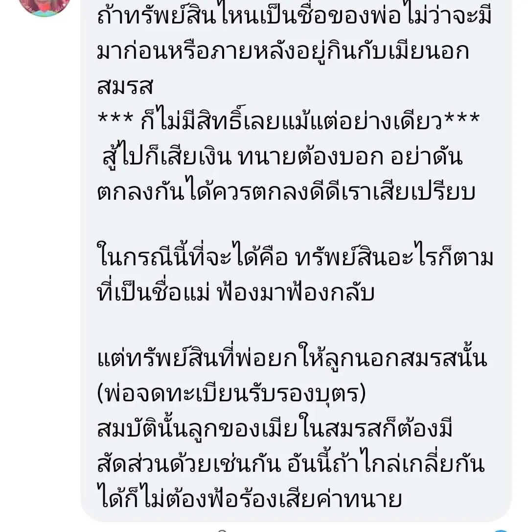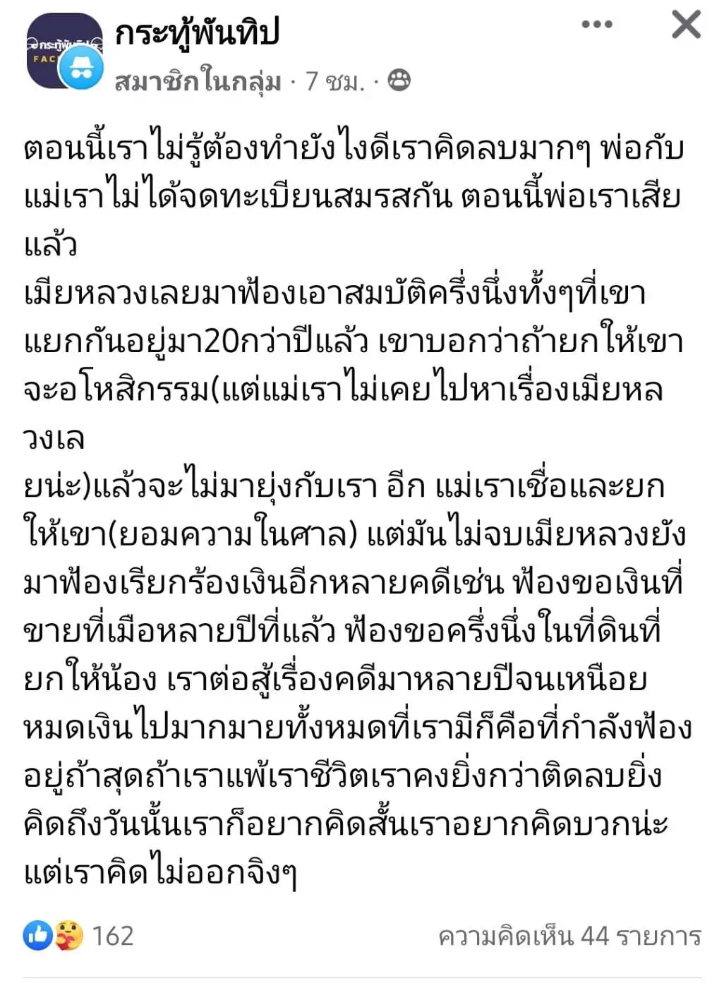 แต่มันไม่จบเมียหลวงยังมาฟ้องเรียกร้องเงินอีกหลายคดีเช่น ฟ้องขอเงินที่ขายที่เมือหลายปีที่แล้ว ฟ้องขอครึ่งนึ่งในที่ดินที่ยกให้น้อง