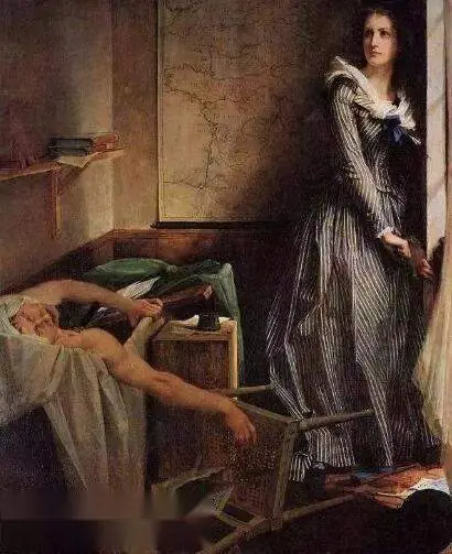 คำโกหกประการที่สองคือหลังจาก Marat ถูกลอบสังหาร ฆาตกร Corday ไม่มีความตั้งใจที่จะหลบหนีจากที่เกิดเหตุ และเธอเพียงแค่อยู่ที่นั่นอย่างเงียบๆ เพื่อรอให้ถูกจับ อย่างไรก็ตาม ภาพวาดของ David "The Death of Marat" ไม่เห็นฆาตกร และฆาตกรที่ถูกกวาดล้างก็เป็นอีกภาพโกหกของภาพนี้