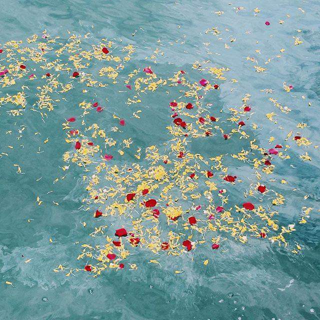 จากนั้นประธานโยนเหรียญลงทะเลเพื่อซื้อที่ตามธรรมเนียมแล้วลงบันไดเรือทางกาบซ้ายเพื่อลอยกระทงดอกไม้เจ็ดสี..วางบนผิวน้ำและประคองลุ้งอังคาร ค่อยๆวางบนผิวน้ำโดยให้ทุกคนในพิธีถือสายสิญจน์ไปด้วยและเมื่อลุ้งอังคารลงสู่ผิวน้ำแล้วให้โรยกลีบกุหลาบธูปเทียนตามลงไปรวมทั้งสิ่งของที่เหลือจากการไหว้บูชาทั้งหมดลงไปด้วย จากนั้นให้แล่นเรือวนซ้ำทั้งหมด3รอบเป็นอันเสร็จพิธี..