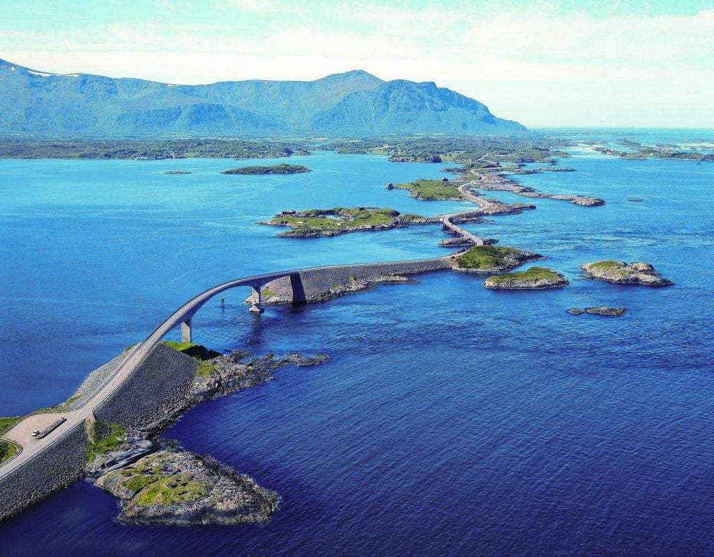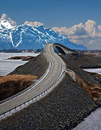 ถนนที่สวยงามที่สุดแห่งหนึ่งของโลกคือถนนมหาสมุทรแอตแลนติกในนอร์เวย์ แม้จะไม่ได้อยู่ใต้น้ำทั้งหมด แต่ก็รวมถึงถนนที่ทอดยาวจนดูเหมือนโผล่ขึ้นมาจากทะเลและคดเคี้ยวไปตามภูมิประเทศชายฝั่งอันน่าทึ่ง