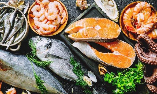 2. ปลาที่มีไขมัน: ปลา เช่น ปลาแซลมอน ปลาแมคเคอเรล และปลาซาร์ดีนมีกรดไขมันโอเมก้า 3 สูง ไขมันที่ดีต่อสุขภาพเหล่านี้ช่วยรักษาความยืดหยุ่นของผิวหนัง ลดการอักเสบ และรักษาความชุ่มชื้นของผิวหนัง