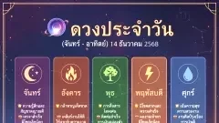ดวงประจำวัน: คนเกิดวันจันทร์ถึงอาทิตย์ (14 ธ.ค. 2568)