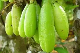 ผล เป็นผลเดี่ยวออกเป็นพวง ผลลักษณะเป็นทรงกระบอก มีเหลี่ยมมนๆอยู่ 4-5 เหลี่ยม โคนผลเล็ก ก้นผลใหญ่กว่า อาจจะมีร่องเล็กๆ 2-3 ร่องที่ก้นผล ผิวเปลืองบาง สีเขียวสด ผลที่อยู่ปลายช่อมีขนาดใหญ่กว่าที่โคนช่อ ผลดิบเนื้อด้านในสีเขียวอ่อนอมขาว ฉ่ำน้ำ รับประทานได้ มีรสเปรี้ยวจัด ส่วนผลสุก สีสีออกเหลือง