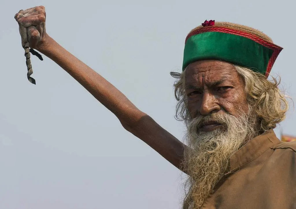 เรื่องน่าจะเป็นเรื่องที่แปลกที่สุดเท่าที่เคยได้ยินมา เนื่องจากมีชายนักบวชชาวอินเดียคนหนึ่งนามว่า Amar Bharati ผู้อุทิศตนให้กับศาสนาฮินดู ที่ยกมือขึ้นตั้งแต่ปี 1973 และจนถึงปัจจุบันก็ไม่เคยเอามือหลังอีกเลย แต่หลังจากยกมือขึ้นเป็นเวลา 2 ปี ก็ทำให้มือลีบเป็นง่อยเปลี้ยเสียมือเสียแขนไปเลย..