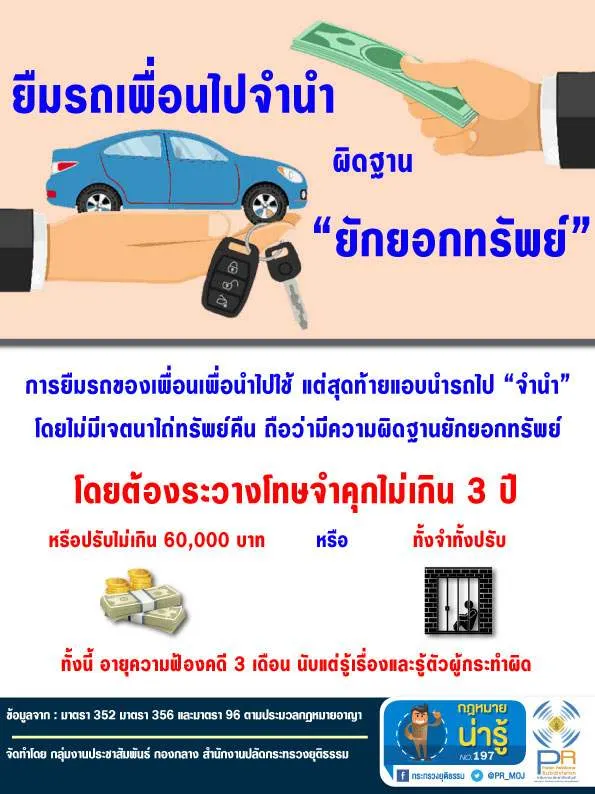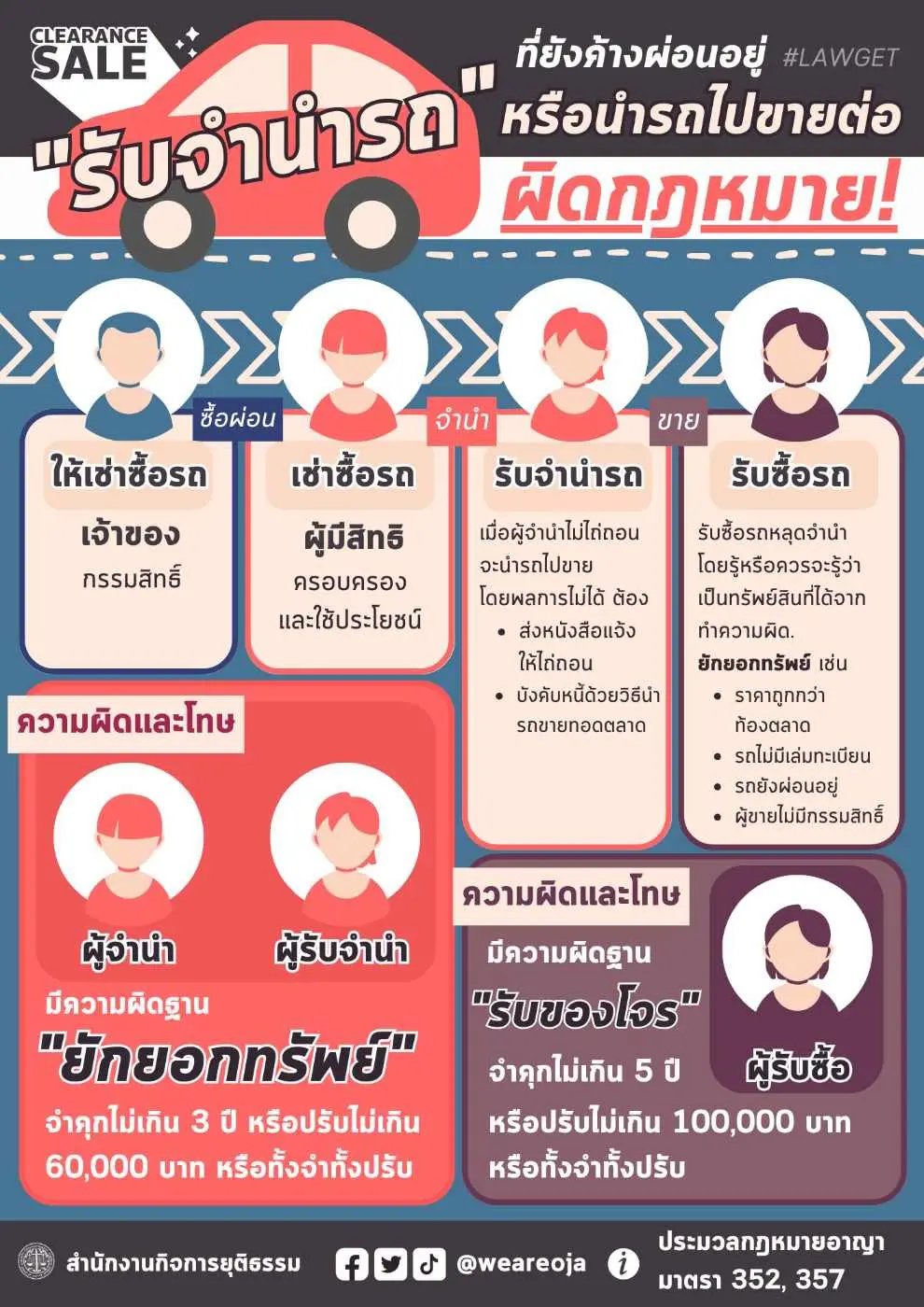 นำรถยนต์ที่ผ่อนยังไม่หมด ไปขายต่อหรือไปจำนำนอกระบบ โทษจำคุกไม่เกิน 3 ปี