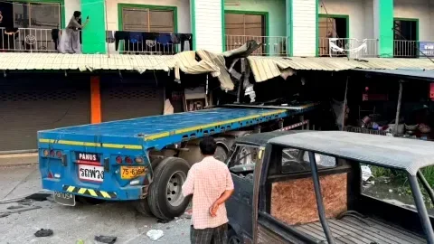 ระทึกยามเช้า! เทรลเลอร์หางเปล่าเสียหลัก พุ่งชนอาคารหน้าโรงเรียน เจ็บ 2 ราย