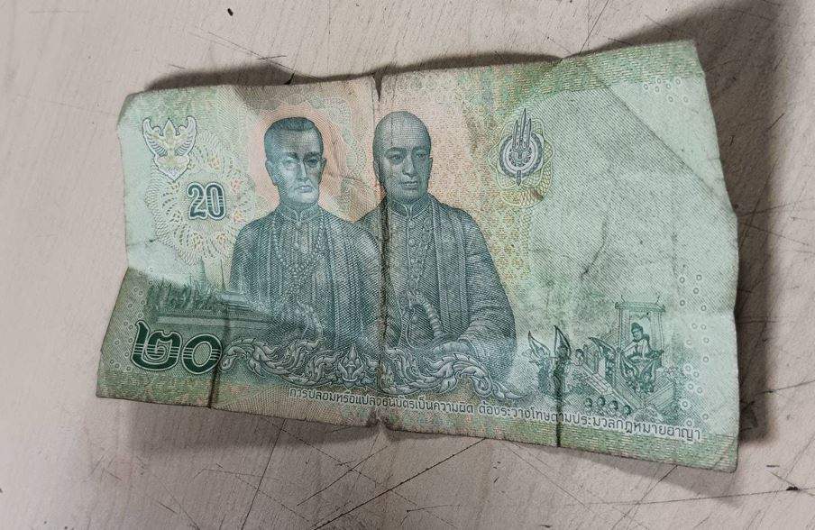 ผู้ใช้เฟซบุ๊กรายหนึ่งได้โพสต์ข้อความเล่าว่า ตนเองได้เข้าไปซื้อสินค้าที่ร้านสะดวกซื้อแห่งหนึ่ง โดยได้ชำระเงินด้วยธนบัตรใบละ 20 บาท ปรากฏว่าพนักงานร้านแจ้งว่าไม่รับแบงก์เก่าและแบงก์ติดเทป