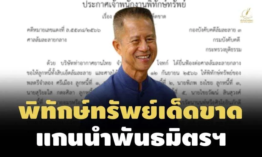 วันที่ 17 ต.ค. 2566 ราชกิจจานุเบกษาเผยแพร่ประกาศ เจ้าพนักงานพิทักษ์ทรัพย์ เรื่อง คําสั่งพิทักษ์ทรัพย์เด็ดขาด พลตรีจําลอง ศรีเมือง ลูกหนี้ที่ 1, นายสนธิ ลิ้มทองกุล ลูกหนี้ที่ 2, นายพิภพ ธงไชย ลูกหนี้ที่ 3, นายสุริยะใส กตะศิลา ลูกหนี้ที่ 4, นายสมศักดิ์ โกศัยสุข ลูกหนี้ที่ 5, นายไชยวัฒน์ สินสุวงศ์ ลูกหนี้ที่ 6, นายอมรหรืออิทธิหรืออมรเทพหรือรัชต์ชยุตม์หรืออมรศักดิ์ อมรรัตนานนท์หรือศิรโยธินภักดี หรืออิทธิประชา ลูกหนี้ที่ 7, นายสําราญ รอดเพชร ลูกหนี้ที่ 8, นายศิริชัย ไม้งาม ลูกหนี้ที่ 9, นางมาลีรัตน์ หรือมาลีรักษ์ แก้วก่า ลูกหนี้ที่ 10 และนายเทิดภูมิไทหรือเทิดภูมิ ใจดี ลูกหนี้ที่ 11