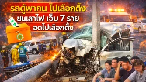 รถตู้พาคนจากสมุยกลับภูเขียวไปเลือกตั้ง หลับในชนเสาไฟ เจ็บ 7 ราย อดใช้สิทธิ์