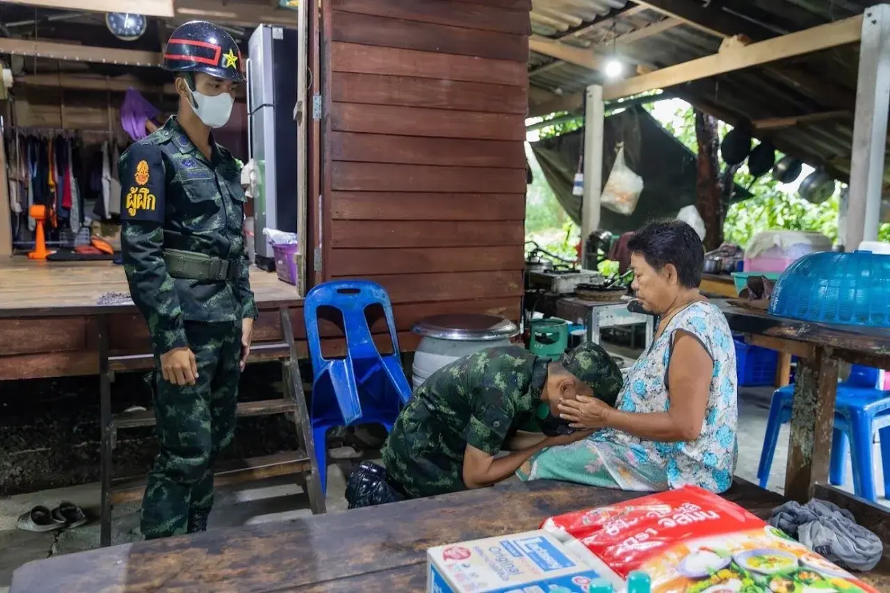 พันโท สิขเรศ ตรีประภากร ผู้บังคับกองพันทหารช่างที่5 กองพลทหารราบที่5 พร้อมด้วย ผู้ฝึกทหารใหม่,สมาคมเเม่บ้าน ทบ.เเละ หน.พยาบาล ได้นำ พลทหาร สายตะวัน ปานบรรจง ทหารใหม่ ผลัดที่ 2 ประจำปี 2568 เดินทางเข้าเยี่ยมครอบครัวของ พลทหาร สายตะวัน ปานบรรจง