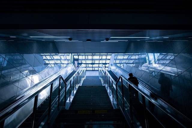 - กดปุ่มหยุดการทำงานของบันไดเลื่อน