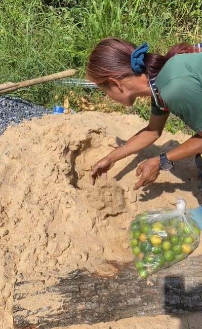 มะนาวที่ยังสดๆ เอาไปฝังทรายไว้