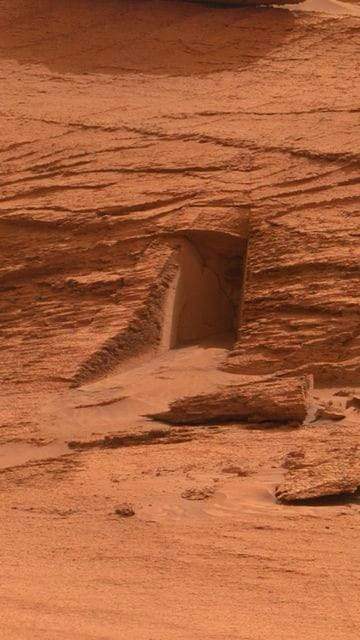 นี่คือภาพถ่ายของเนินหินแห่งหนึ่งบนดาวอังคาร มีหินรูปร่างแปลกประหลาดที่พบบนเนินเขาซึ่งจุดประกายจินตนาการของหลายๆ คน ซึ่งนำไปสู่การคาดเดาเกี่ยวกับธรรมชาติที่แท้จริงของมัน บางคนเสนอว่าอาจเป็นทางเข้าสู่ฐานทัพลับ ในขณะที่บางคนเชื่อว่าอาจใช้เป็นวัดสำหรับพิธีกรรมทางศาสนา หรือแม้แต่สุสานใต้ดินสำหรับสิ่งมีชีวิตนอกโลก ลักษณะลึกลับนี้เรียกว่า "ประตูลึกลับ" ได้ดีในรูปถ่ายที่ถ่ายด้วยกล้องของรถแลนด์โรเวอร์คิวริออซิตี้ โดยพบเนินแห่งนี้ที่บริเวณพื้นที่ Greenheugh ซึ่งเป็นเนินเขาสูงชันที่มีพื้นผิวขรุขระคล้ายด้านหลังของจระเข้ ซึ่งสิ่งที่ถูกเรียกกันว่า "ประตูเอเลี่ยน" นี้อาจเป็นผลมาจากการแตกหักด้วยแรงเฉือนในโครงสร้างของหิน การแตกหักเหล่านี้อาจเกิดจากความเครียดหรือแรงภายนอกที่เปลี่ยนแปลงรูปร่างของหิน เช่น แผ่นดินไหวรุนแรงบนดาวอังคาร เป็นต้น