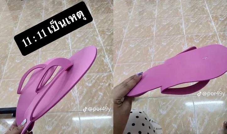 มีผู้ใช้ TikTok รายหนึ่งโพสต์คลิปวิดีโอเพื่อแชร์ประสบการณ์การซื้อรองเท้าโปร 11.11 ราคาอาจจะล่อตาล่อใจ จนรีบกดสั่งซื้อไม่ทันได้ดูรายละเอียด แต่สภาพเมื่อถึงทำเอาเจ้าของโพสต์ถึงตะลึงไปเลยกับความบางของรองเท้า ที่บางเฉียบจนเหมือนไม่ได้ใส่ เพราะพื้นรองเท้าแทบจะกลืนไปกับพื้นดิน