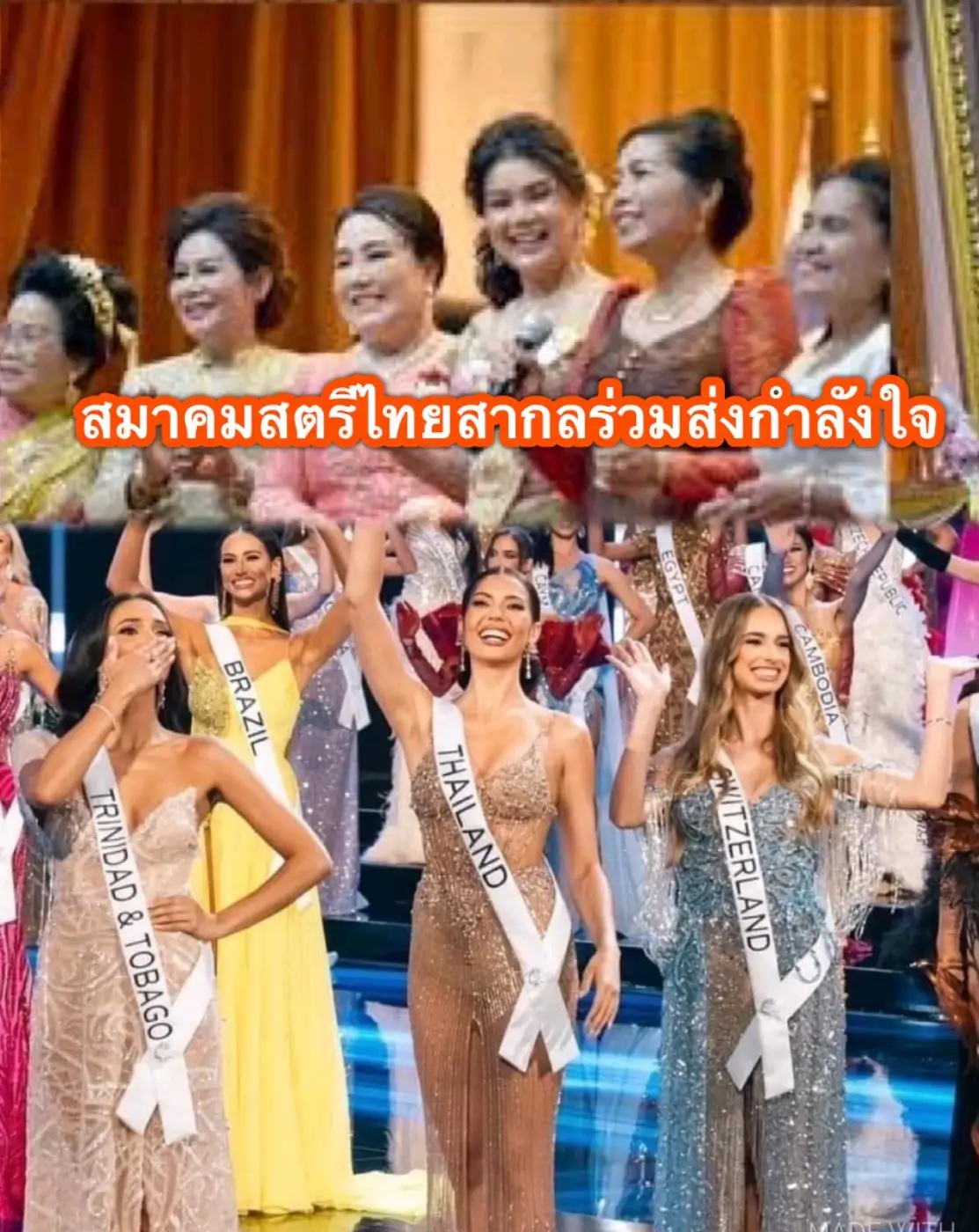 Wow!ชุดพระแม่ธรณี!สมาคมสตรีไทยสากลร่วมส่งกำลังใจ MISS Universeแอนโทเนีย 2023 ซึ่งใช้ตราสัญลักษณ์เป็นพระแม่ธรณีบีบมวยผม