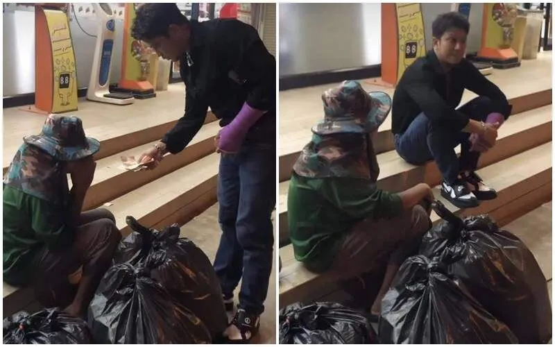 "หนุ่ม กะลา" เทหมดกระเป๋า..ช่วยแม่ลูกเก็บขยะ