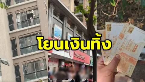 ชาวบ้านแย่งเก็บ หลังหญิงคนหนึ่งโยนเงินจำนวนมาก ลงมาจากระเบียงอพาร์ตเมนต์ของเธอ