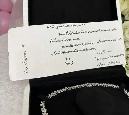 ในขณะที่ฝ่ายชายเองก็ไม่ยอมน้อยหน้า ได้อวยพรวันเกิดว่าที่ภรรยา ผ่านอินสตาแกรมที่ชื่อ @peace.kan โดยระบุข้อความสุดแสนจะคลั่งรักด้วยว่า “Happy Birthday เด็กน้อย 35 ขวบ ในฐานะแฟนปีสุดท้ายค่า!! ปีหน้าเราจะเปลี่ยนสถานะกันแล้วนะ เป็นครอบครัวเดียวกัน ตอนนี้ก็เริ่มแคะกระปุกออมสินมาสร้างบ้านเราแล้วนะ ปีนี้ตั้งใจเลือกร้านนี้เพราะร้านนี้ คือ ร้านที่หนูถูกขอเป็นแฟนเมื่อ 4 ปีที่แล้วเนอะ มีรูปแรกที่เราขอเป็นแฟนกันด้วย และก็มาในฐานะที่จะเป็นแฟนปีสุดท้าย ถามเจ้าตัวว่าโรแมนติกไหม เจ้าตัวบอก “ม่ายยย” ตั้งใจจะเซอร์ไพรส์ สำเร็จบ้างไม่สำเร็จบ้าง แต่อยากให้หนูยิ้มได้นะคะ ปล. ขอบคุณทุกคนที่มาช่วยเซอร์ไพรส์จริงๆ นะครับ มีคลิปลง YT 3 ธค 66 นี้นะครับ #แก้มพีท #29nov2023″