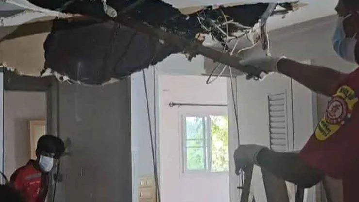 มุดฝ้าลักตัดสายไฟ! พลาดโดนชอร์ตดับสลด ขึ้นอืดคาเพดานบ้าน