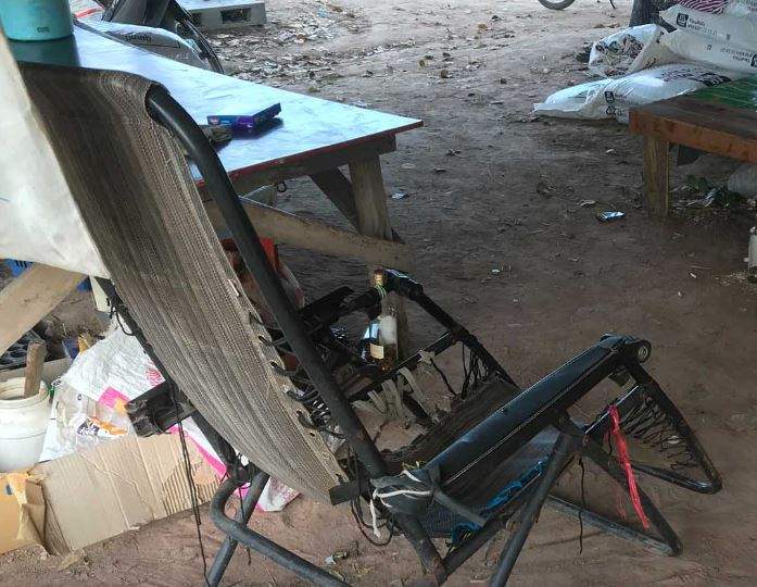 - ที่เกิดเหตุ บริเวณเต็นท์สำหรับเฝ้าไร่แตงโม พบขวดสุรา 1 ขวด ที่ผู้ตายนั่งดื่มกับเพื่อนร่วมวงอีก 5 คน