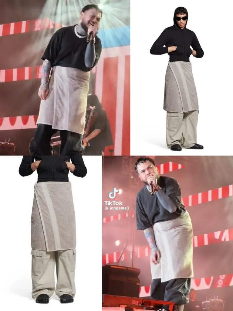 โดยชุดที่ทาง “URBOY TJ” ได้สวมใส่นั้น ก็เป็นกระโปรงผ้าเช็ดตัวจากแบรนด์ Balenciaga ในคอลเลคชั่น Spring/Summer2024 สนนราคาอยู่ที่ $925 (ในช็อปไทยประมาณ 30,800 บาท)