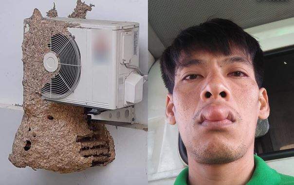 ช่างแอร์รายหนึ่งรับงานซ่อมแอร์ในอาคารแห่งหนึ่ง แต่คอมเพรสเซอร์แอร์ตั้งอยู่นอกอาคาร ซึ่งอยู่ติดกับรังต่อขนาดใหญ่ ช่างแอร์ไม่หวั่นต่ออันตรายจึงเข้าไปซ่อมแอร์ แต่สุดท้ายก็โดนต่อยปากบวมเจ่อ