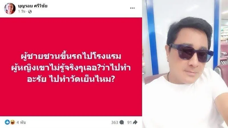 รวมทั้ง ขุนพลเพลงใต้ แดนสะตออย่าง เอกชัย ศรีวิชัย ก็ได้ออกมาโพสต์ตั้งคำถามอีกว่า “ผู้ชายชวนขึ้นรถไปโรงแรม ผู้หญิงเขาไม่รู้จริงๆ เลอ? ว่าไปทำอะไร ไปทำวัตรเย็นไหม?” ทำเอาบรรดาชาวเน็ตต่างพากันเข้ามาคอมเมนต์กันรัวๆ