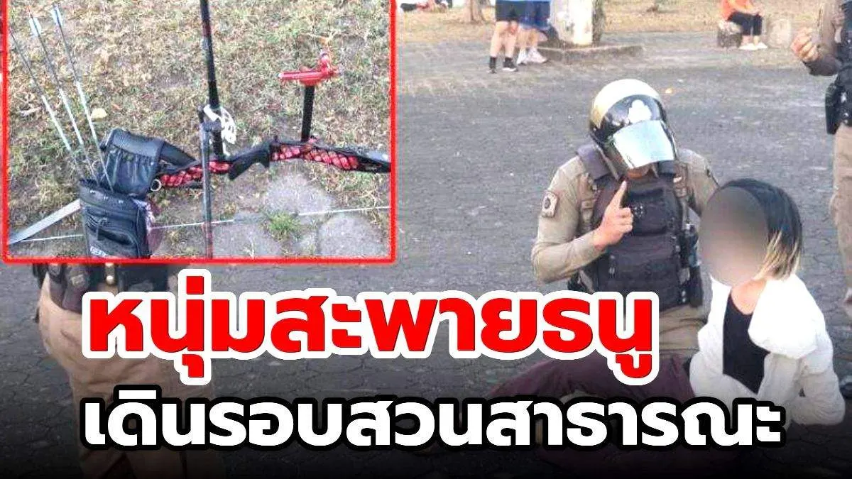 หนุ่มโรบินฮูด! สะพายธนู เดินรอบสวนสาธารณะ หวั่นอันตรายต่อผู้คน