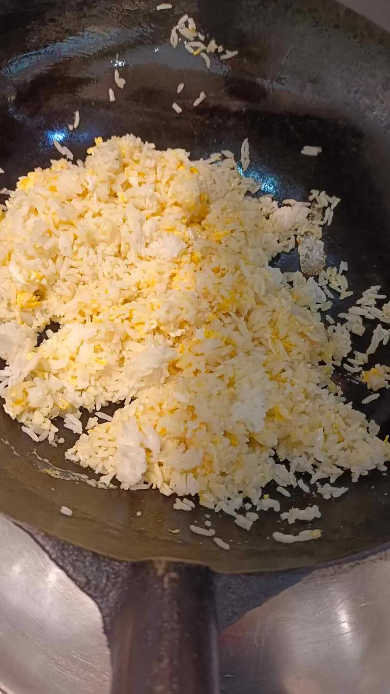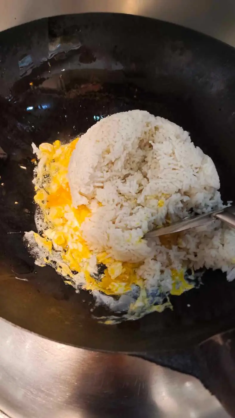 ผัดให้ข้าวกับไข่เข้ากัน