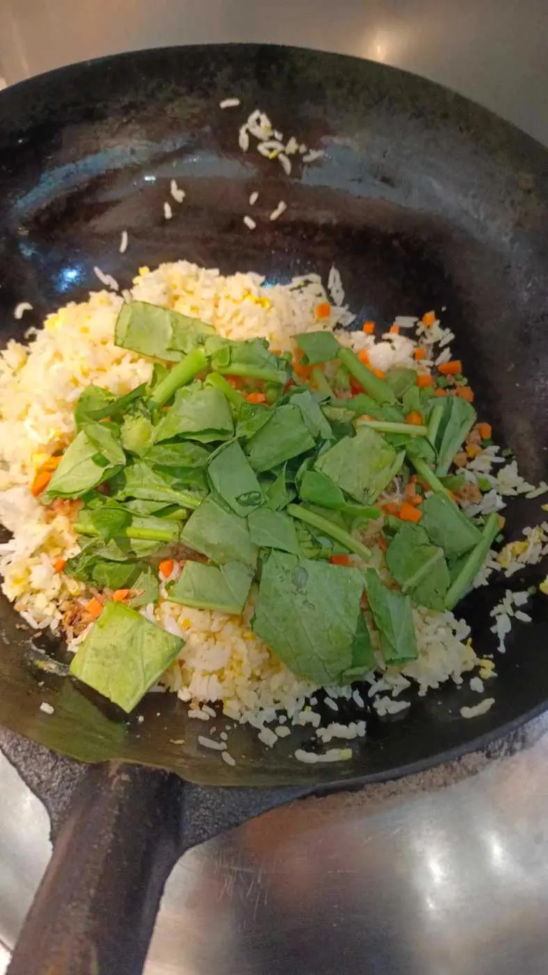 ใส่คะน้าหั่นชิ้น ปลาเค็ม แครอท ต้าหอมซอย