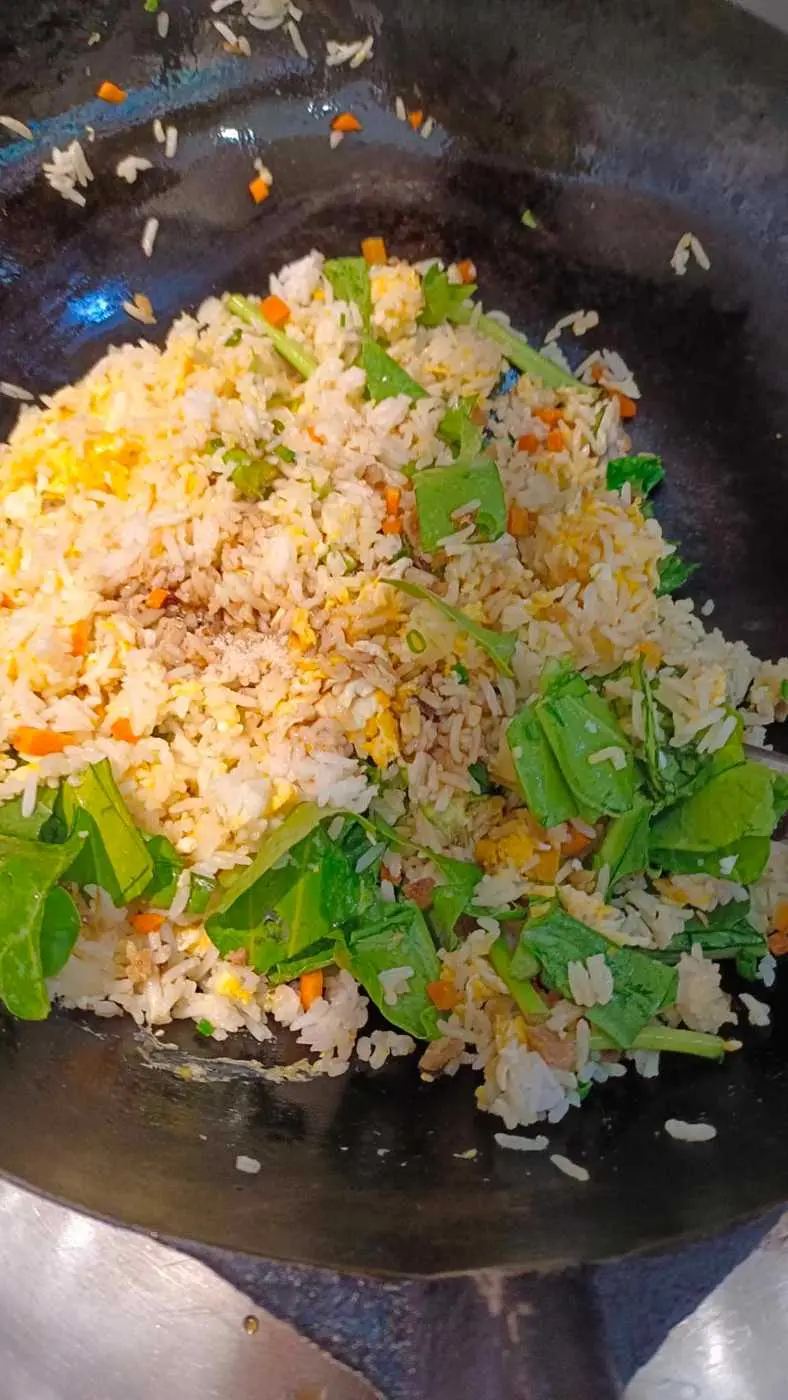 จากนั้นใส่ข้าวลงไปผัด