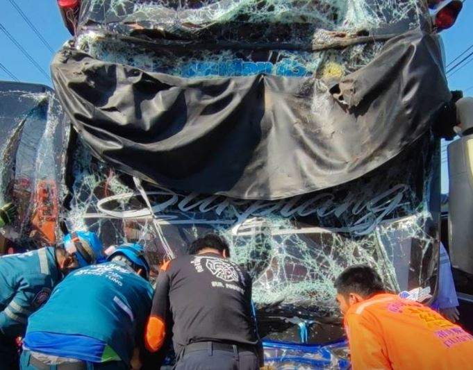 รถบัสพานักเรียนไปทัศนศึกษา กระบะตัดหน้า ชนกันเละ